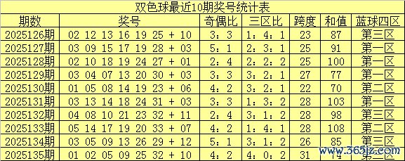 在最近10期奖号中,红一区出号23个,红二区出号22个,红一区出号15个,红三区出号较少;